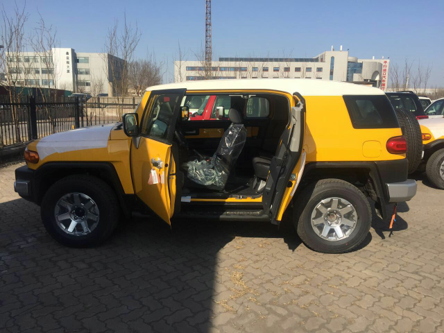 【网上车市 最新行情】17款酷路泽FJ 双油箱159升,两气囊,蠕行模式,水平仪,5速变速箱,手动空调,防水织物座椅,烟灰盘,车身同色仪表盘,电动车窗,真皮方向盘,动力转向,气泵,中控锁,脚垫,乘客扶手,导航,中央控制台,8扬声器,ABS,,车身稳定控制,差速锁, 后停车传感器,定速巡航,后倒车影像,无线遥控门锁,银色门把手,银色车门后视镜,后窗刮雨器,电动后视镜带照明,脚踏板,越野旗帜,银色散热隔栅 24小时全国销售热线:13389938796 刘悦(同微信)