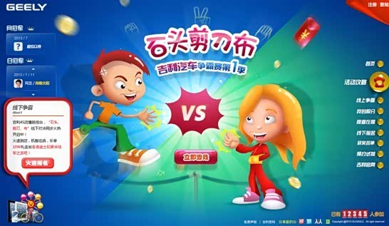 小主一出手,就知有没有!流火七月,“石头剪刀布,吉利汽车争霸赛”第一季火热来袭!争霸擂台已为各位小主搭好,丰厚奖品及超大礼包都是极好的,自然是为各位小主备足了份儿,就等各小主的大驾光临!