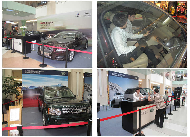 2012年5月19—20日,由北京惠通陆华四惠4S中心,联合杏石口4S中心,在万柳购物中心,举办为期两天的捷豹路虎双品牌车展,活动期间,两店邀约的嘉宾,积极参加了时下最热的“路虎揽胜极光”及捷豹品牌旗舰产品——捷豹XJ两款车型的试乘试驾。