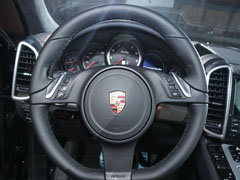 2012款保时捷卡宴内饰设计的变化非常大,仪表保留了保时捷传统的五组圆形仪表,在整体氛围上凸显出保时捷跑车的运动风格。车内的质量感明显较老款有了提升:塑料按键的材质高档,车内装饰材料以真皮为主,辅以铝材和实木材料进行点缀,显得非常豪华。