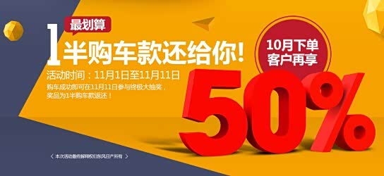 2.10月31日前交车客户,有资格参与10月31日,11月11日共两次抽取大奖机会。